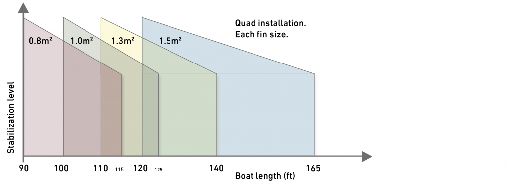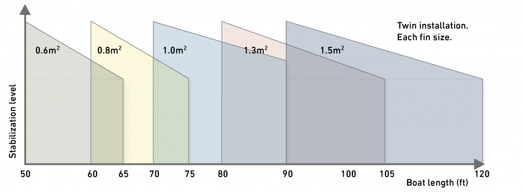 A slightly bigger fin will improve the zero speed stabilisation, which is recommended if the vessel has a top speed below 35 knots.